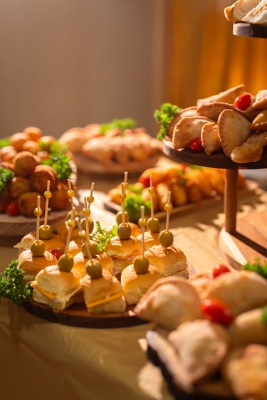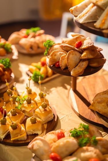 pastelitos de pollo, res, queso, jamon y queso, quipes, bollitos de yuca, croquetas de pollo