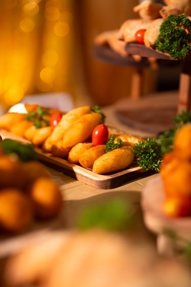 pastelitos de pollo, res, quipes, bollitos de yuca, croquetas de pollo